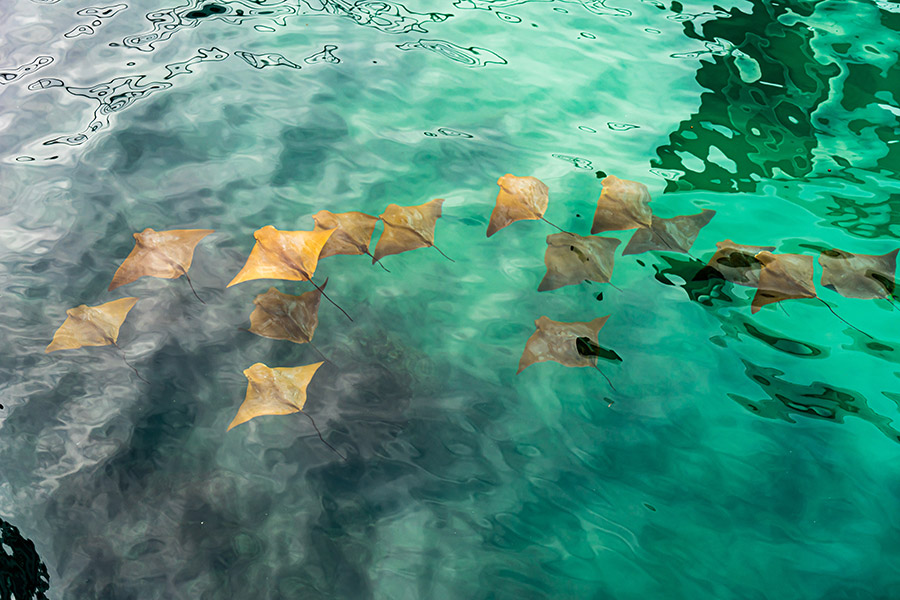 Embark on an adventure in the secluded waters of the Galapagos Islands with a liveaboard experience. Encounter the famous marine iguanas and playful sea lions. The nutrient-dense currents draw an abundance of marine life; during summer, you can witness adult whale sharks and manta rays, whereas the winter months offer crystal-clear waters perfect for observing schools of hammerhead sharks.