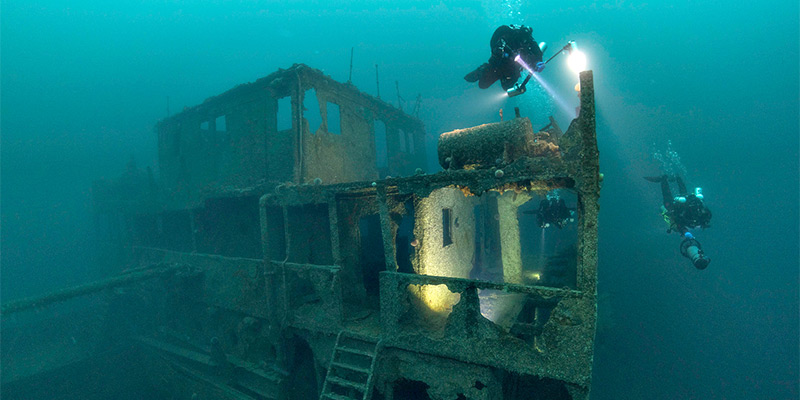 An area of immense strategic importance during WWII, the area boasts over 30 superbly preserved shipwrecks, including the vast German freighter, the Frankenwald. A great option for groups and dive clubs.