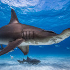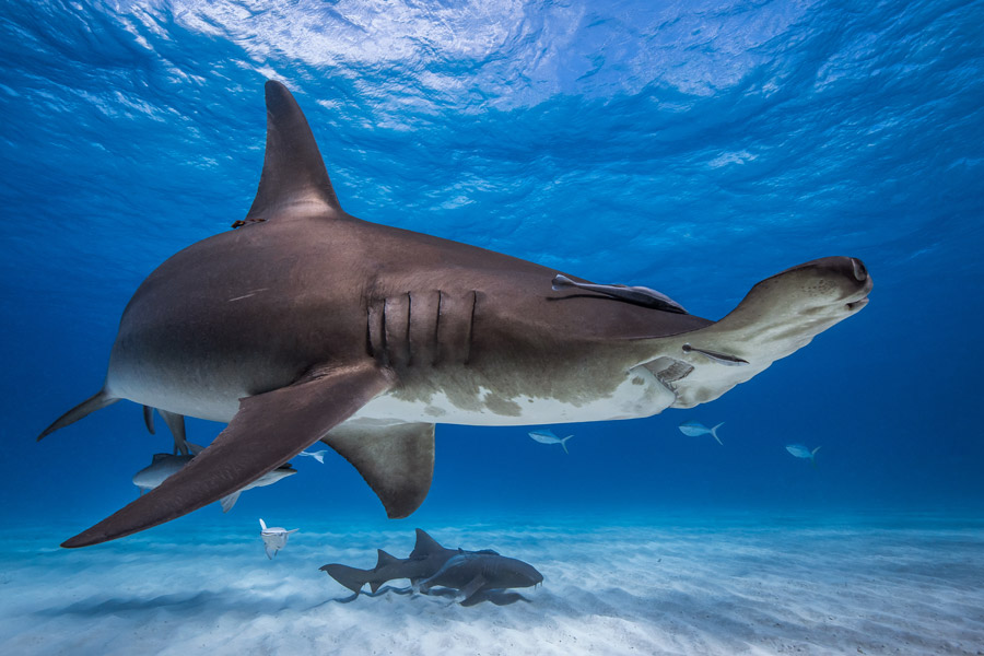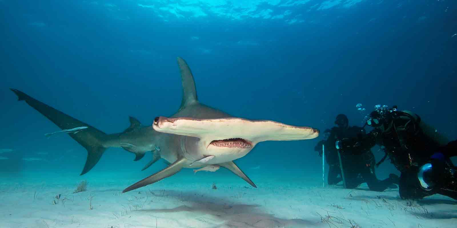 Experience the thrill of world-class shark diving in the Bahamas off the shores of Bimini with the elegant and usually elusive great hammerheads during the seasonal aggregation.